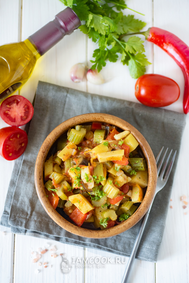 Овощное рагу с сельдереем имеет сбалансированный вкус, оттененный специями и чесночной ноткой, оно прекрасно насыщает и может стать для вашей семьи полноценным обедом или ужином. Приятного аппетита!