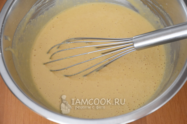 Влить воду, растительное масло и хорошо перемешать до получения однородного теста.