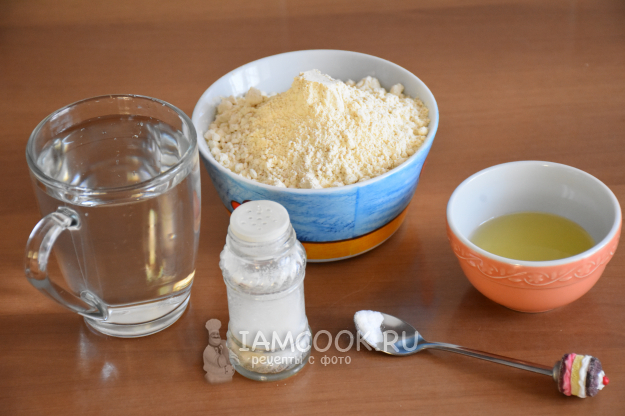 Для приготовления постных оладий из нутовой муки (без глютена!) нам понадобятся следующие ингредиенты.