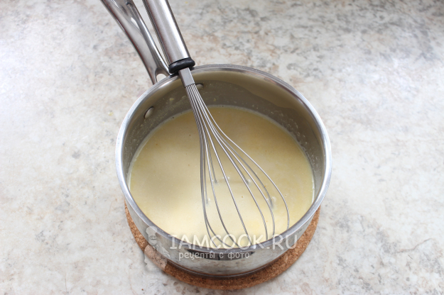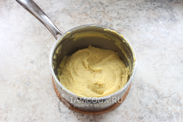 Масса будет довольно быстро густеть. Хорошо и энергично помешиваем, следим, чтобы масса не прилипала к стенкам кастрюли и не подгорала.