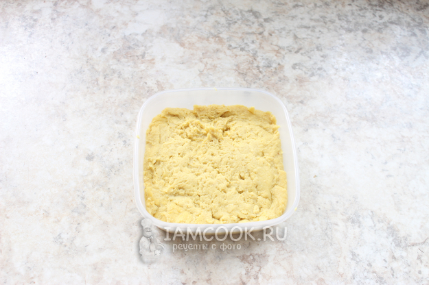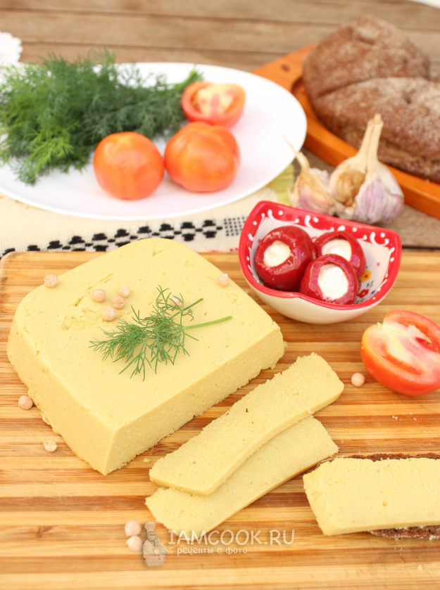 Раскладываем горячий сыр из нутовой муки по формочкам, предварительно смазанным растительным маслом. Когда сыр остынет, убираем его в холодильник минимум на 3-4 часа.
