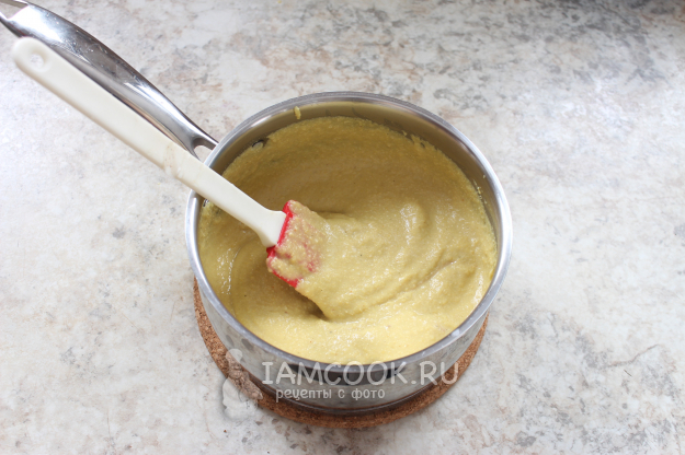Вливаем в горячую воду смесь из нутовой муки и тахини. Варим, постоянно помешивая, на медленном огне.
