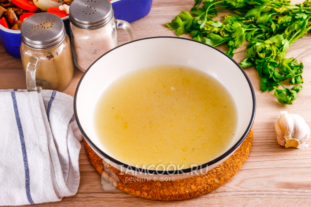 Спустя указанное время бульона останется в три раза меньше, но не выливайте его - он очень концентрированный.