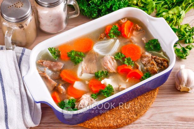 Залейте водой и отварите примерно 1,5 часа - до мягкости мяса, снимая образующуюся пену.