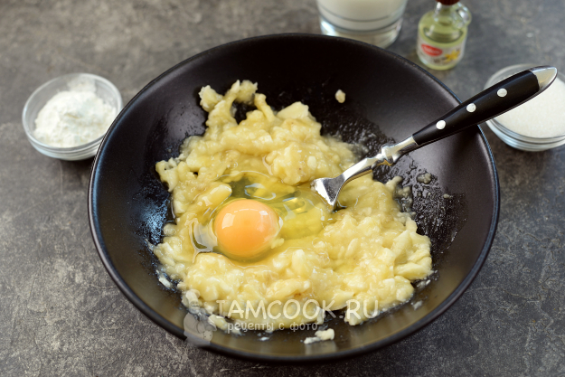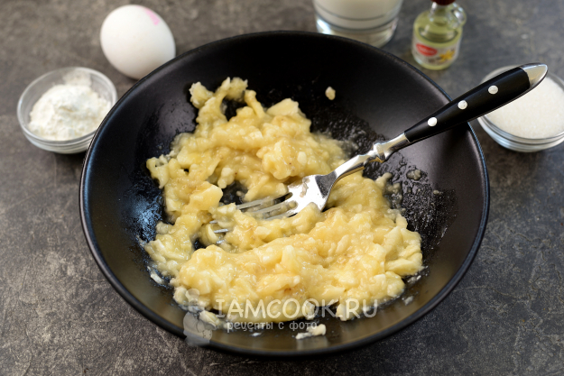 Очистите банан от кожуры, разомните его вилкой до однородного пюре.