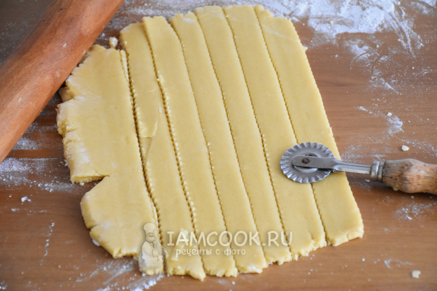 Оставшееся тесто раскатать и нарезать из него полоски (шириной приблизительно 1 см).