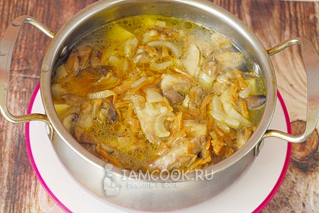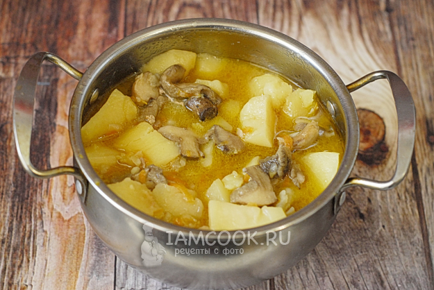Добавим воду так, чтобы лишь слегка покрыть грибы и картошку.