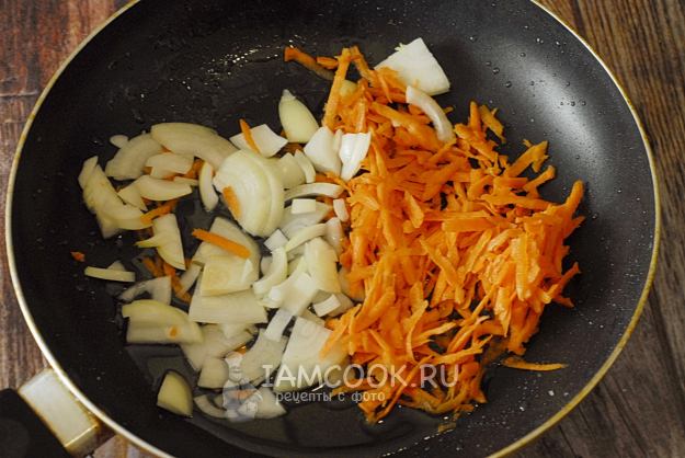 Поджарим лук с морковью на подсолнечном масле 5 минут.
