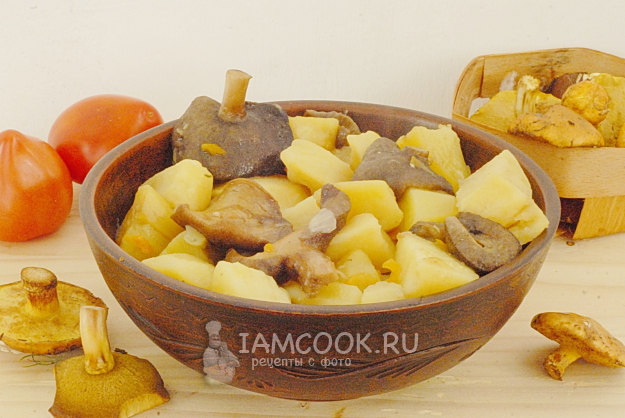Тушеная картошка с маслятами готова. Хоть это блюдо готовится и без мяса, но получается вкусным и сытным!