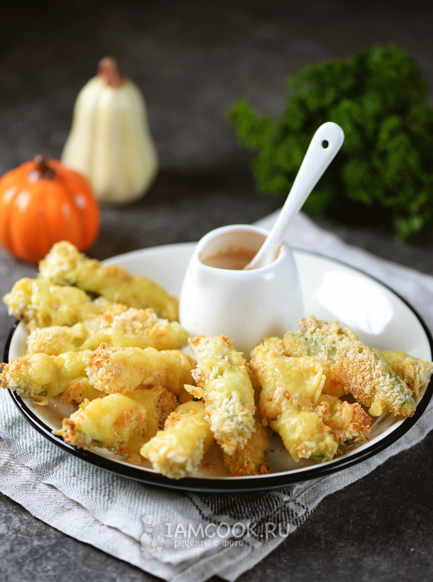 Кабачковые палочки в сырной панировке очень вкусные в горячем виде, подавайте к столу с любимым соусом.