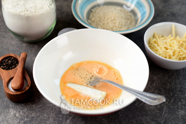 Взбейте в глубокой миске крупное яйцо. Каждый ломтик кабачка обваляйте в муке, потом в яйце.