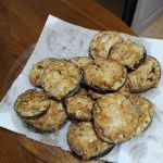 Нарежьте баклажаны ломтиками толщиной до 1 сантиметра, слегка отбейте кухонным молотком. Буквально пару-тройку ударов достаточно, за счет этого баклажаны жарятся очень быстро.