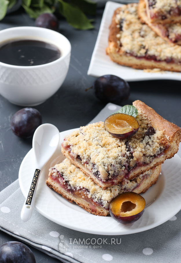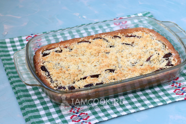 Духовку разогреть до 180 градусов, выпекать немецкий пирог со сливами и штрейзелем 30-35 минут, пока он не зарумянится.