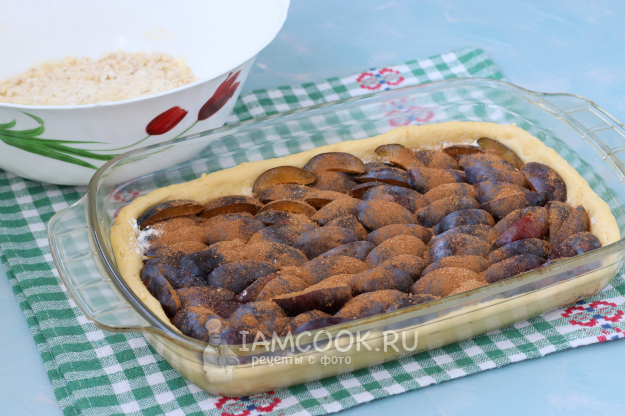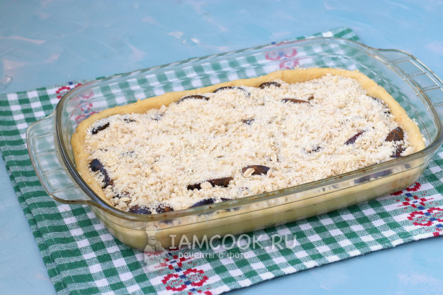 Сверху посыпать пирог штрейзелем.