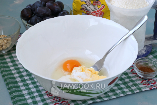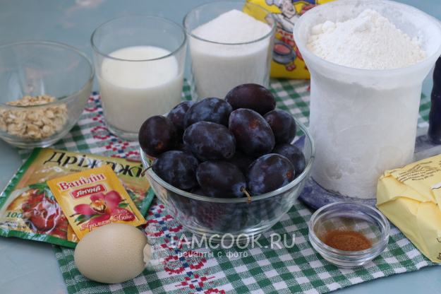 Для приготовления немецкого пирога со сливами и штрейзелем подготовить из списка необходимые ингредиенты.
