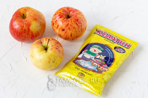 Для приготовления пп желе без сахара подготовьте яблоки, воду и желатин.