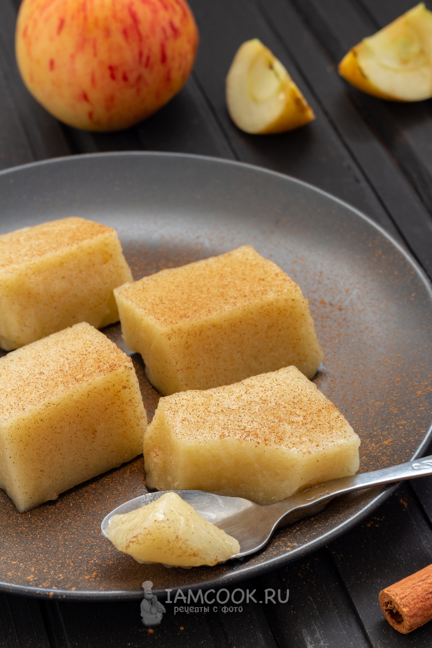 Вкусное диетическое яблочное желе без сахара с желатином готово! Для подачи я его порезала на квадратики и присыпала ароматной корицей. И вот такое оно, когда я добавила в него 15 г желе.