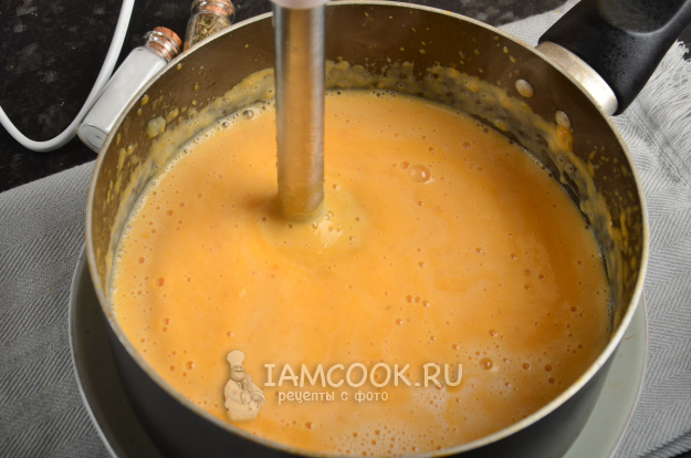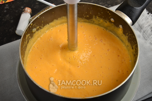 Доведите суп до состояния пюре с помощью погружного блендера - на это уйдет буквально минута.