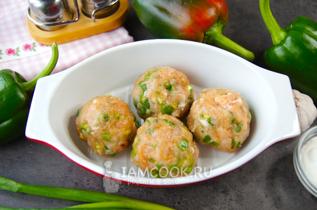 Из получившегося фарша сформируйте тефтели желаемого размера, выложите в огнеупорное блюдо.