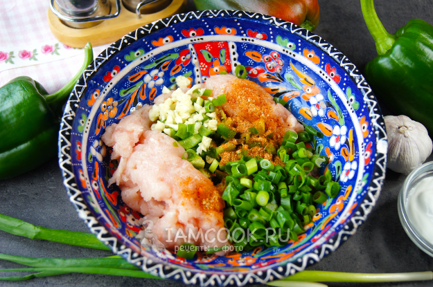 Подготовим все необходимые продукты для тефтелей с болгарским перцем и приступим к приготовлению.