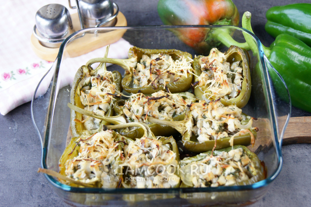 Вкусный, ароматный перец, фаршированный рыбой готов.