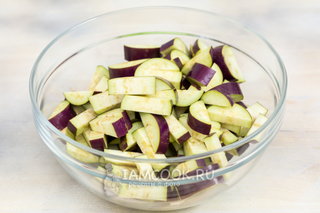 Баклажаны нарежьте достаточно крупными брусочками.