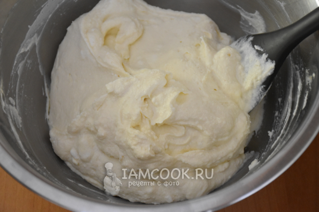 Соединить творог с яйцами и перемешать до объединения ингредиентов.
