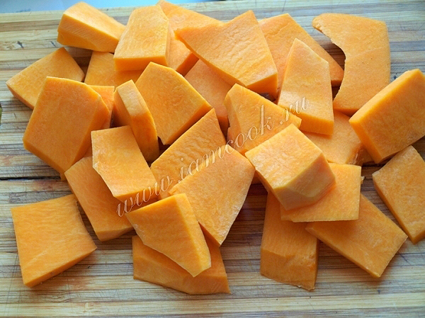 Тыкву нарезать крупными кубиками или кусочками.