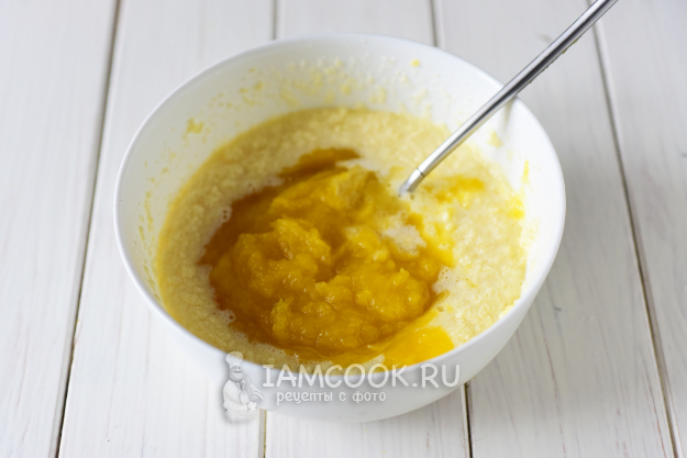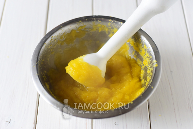 Перебить погружным блендером тыкву до получения однородного пюре.