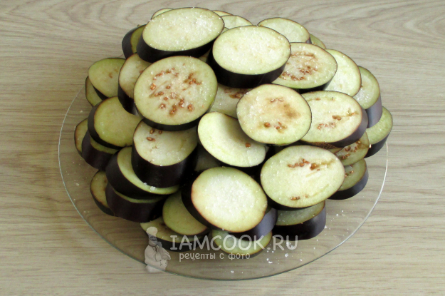 Баклажаны покроются капельками жидкости, её нужно просто стряхнуть вместе с остатками/излишками соли.