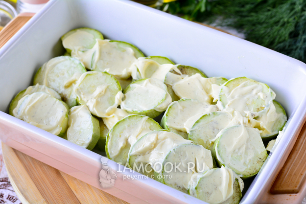 Смажьте кабачки остреньким майонезом - блюдо будет вкуснее и более ароматным.