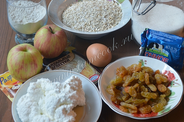 Выпекать овсяный пирог с творогом и яблоками около 40 минут при 180 градусах. Получается очень вкусный и нежный десерт!