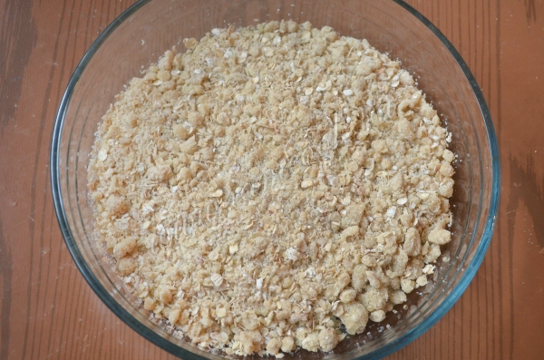 Все перемешать. Тесто должно получиться как крупная крошка. Отставить тесто в сторону, заняться начинкой.