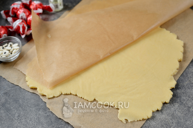 Спустя время положите тесто между двумя листами пергамента, раскатайте толщиной 0,5 сантиметра, в зависимости от толщины у вас получится 12-15 штук готовых печенек.