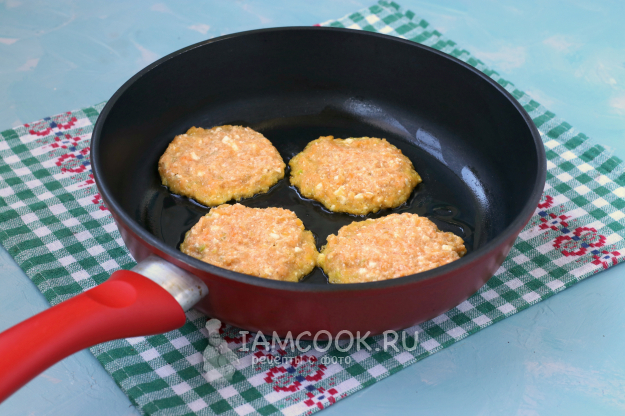 Хорошо разогреть сковороду, влить масло и нагреть. Выкладывать оладьи при помощи столовой ложки. На один оладушек - 1 столовая ложка теста. Поверхность разравниваем и накрываем сковороду крышкой.
