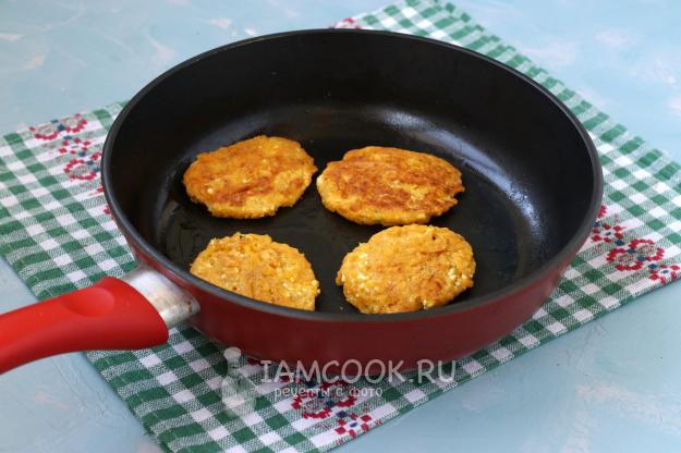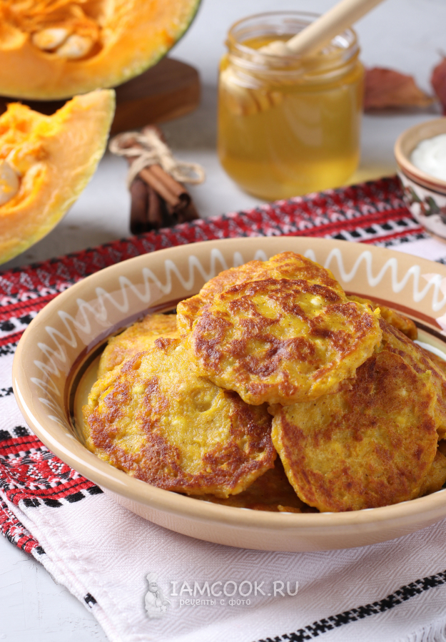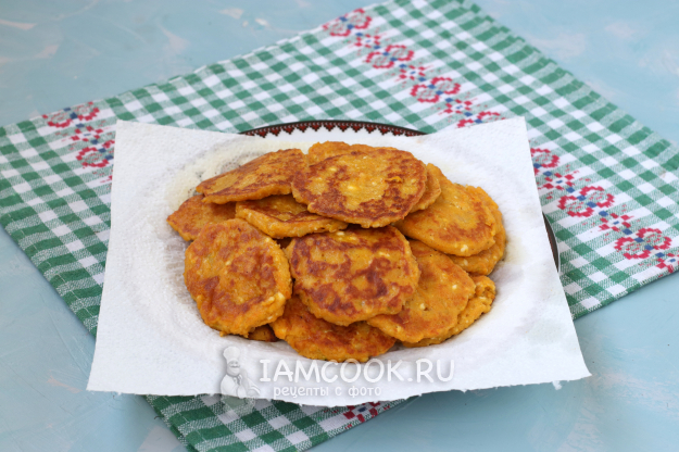 Готовые оладьи из тыквы с творогом выкладываем на бумажную салфетку, чтоб удалить лишнее масло.