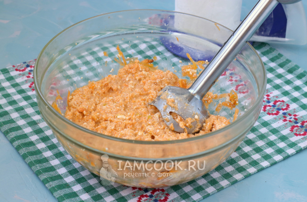 Для лучшего смешивания пробить массу блендером, но без фанатизма: пусть немного тёртой тыквы останется.