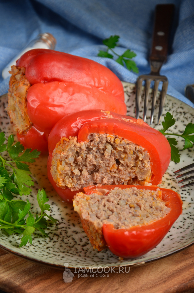 Тушите перцы на слабом огне не менее получаса, можно и дольше. Подавайте фаршированные перцы с гречкой и фаршем сразу, с гарниром или без него, со свежими овощами и зеленью.