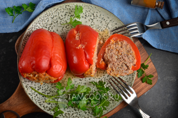 С помощью чайной или столовой ложки наполните перцы начинкой, утрамбовывая так, чтобы внутри не осталось пустот.