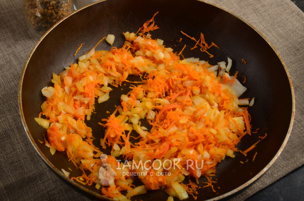 На растительном масле обжаривайте лук и морковь в течение 4-5 минут, помешивая лопаткой.
