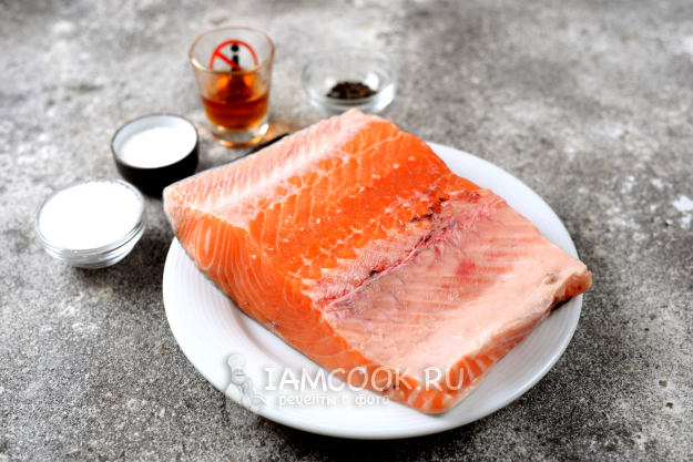 Возьмите продукты для засолки кижуча. Остатки плавника на спине лучше срезать, а вот ребра можно оставить. Рыбу быстро промойте от остатков внутренностей и крови, вытрите бумажными полотенцами насухо. Соль хорошо использовать морскую среднего помола.