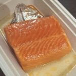 Кусок кижуча обваляйте со всех сторон в этой смеси, чуть сбрызните рыбу коньяком. Это не только придаст рыбе красивый глянец, но и убьет микробов.
