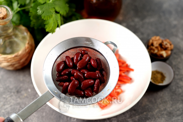 Фасоль я всегда промываю от густого и мутного соуса, так салаты получаются намного вкуснее и привлекательнее внешне, на мой взгляд.