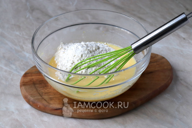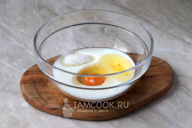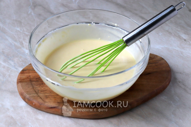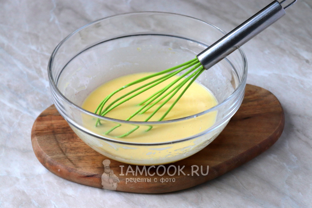 Получившуюся массу размешайте венчиком до однородного состояния. Если любите, можете добавить немного ванильного сахара (1 ч.л. или ванилин на кончике ножа) - он придаст выпечке приятный аромат.