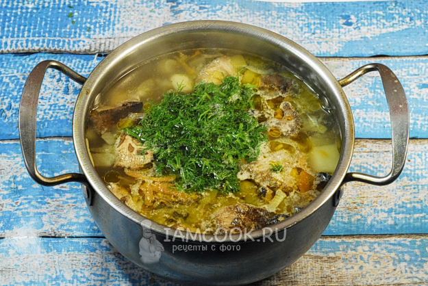 В готовый суп добавляем нарезанный укропчик. Грибной суп из маслят готов, нам осталось только разлить его по тарелкам.