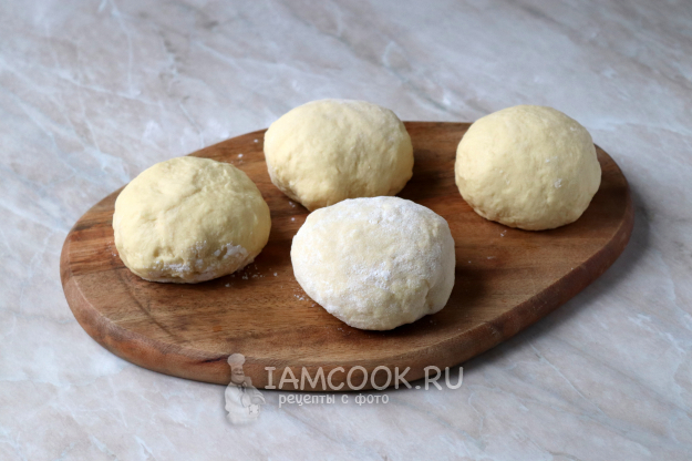 Тесто разделите на четыре равных части, по 145 граммов каждая. Для точности я использовала кухонные весы.