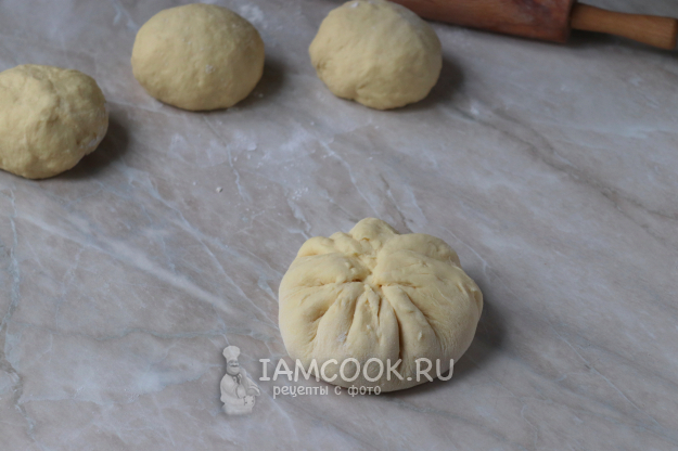 Затем переверните его швом вниз и аккуратно раскатайте скалкой до желаемого диаметра. Таким образом подготовьте все заготовки.