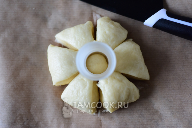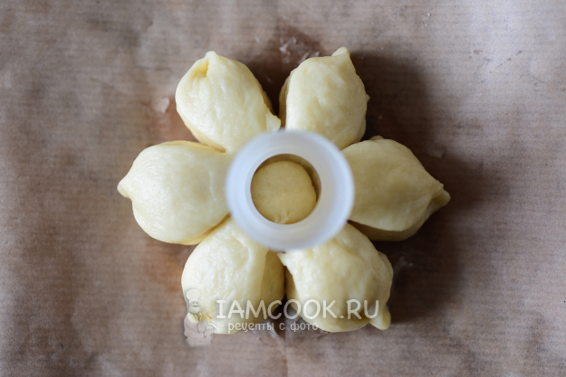 Концы разрезанных частей теста соединить пальцами в виде цветочного лепестка.