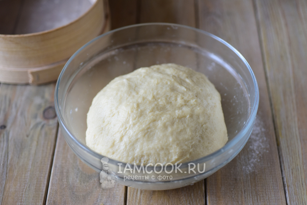 А затем продолжить замес руками. В итоге у нас должно получиться очень мягкое тесто, почти не прилипающее к рукам. Возможно, для достижения нужной консистенции потребуется немного добавить муки. Отставим миску с тестом в теплое место на 1 час подходить.
