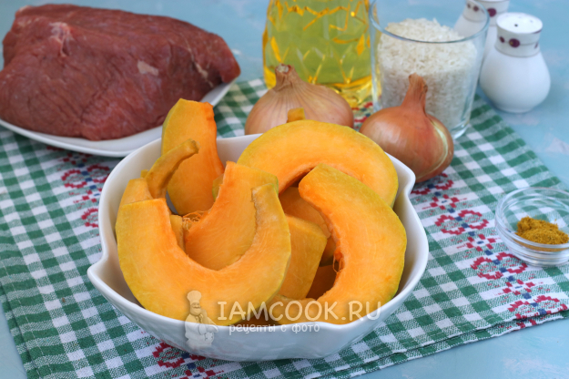 Для приготовления мусаки с тыквой подготовить из списка необходимые ингредиенты.